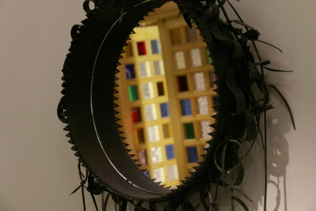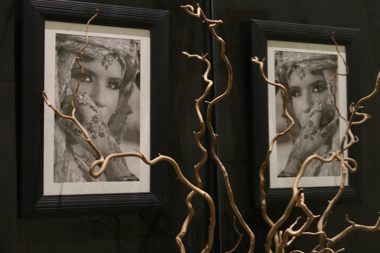 L’imposante et majestueuse tête de lit en plâtre sculpté noir et doré est sublimée par le magnifique damier de zelliges marocains noirs et blancs.