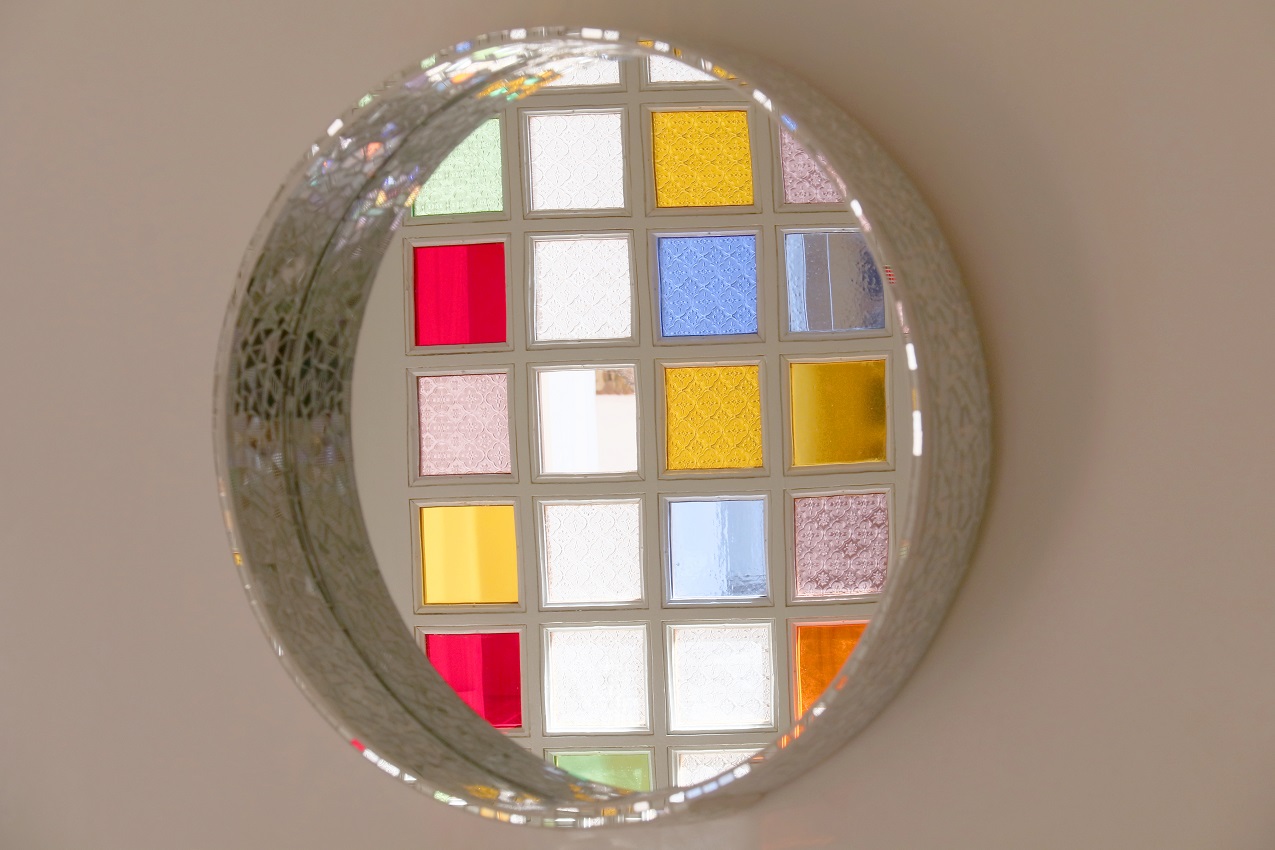 Les reflets éclatants des rayons de soleil à travers les vitraux multicolores embellissent cette fraîcheur et cette brillante innocence.